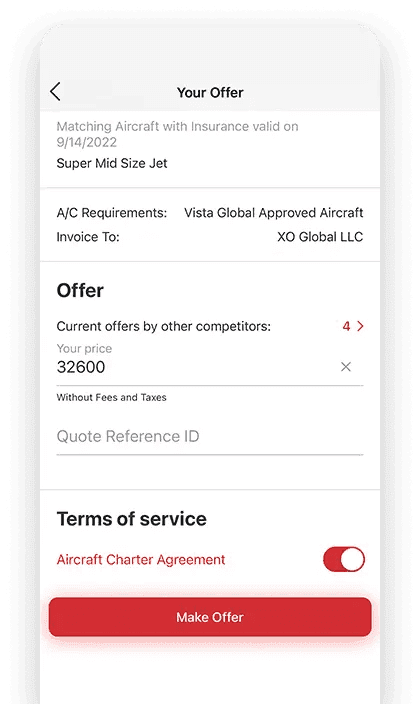 Instant booking — for all XO guaranteed trips, accept and book a private jet instantly no haggling, no quotes — just book!
